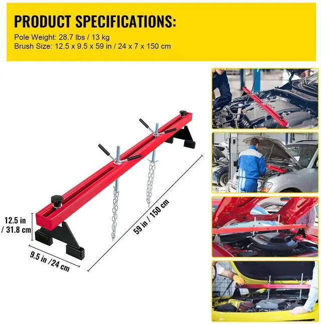 Engine Support Bar 1100 Lbs Capacity Engine Transverse Bar Engine Hoist 2 Point Lift Holder Hoist Dual Hooks, Engine Hoist Keeps Engine Stable for Home Garages & Auto Repair Shop