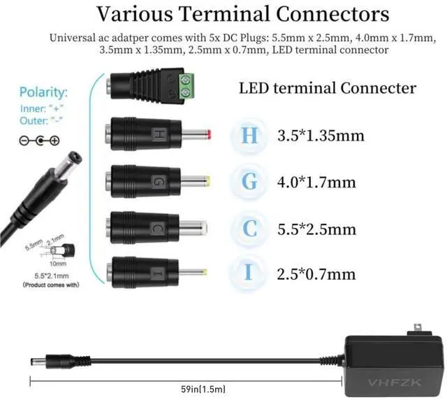 - [Product Packaging]: 1 * 12V 2A AC to DC adapter, 5 replaceable connectors, 1-year warranty, we are available 12hours a day to serve you.