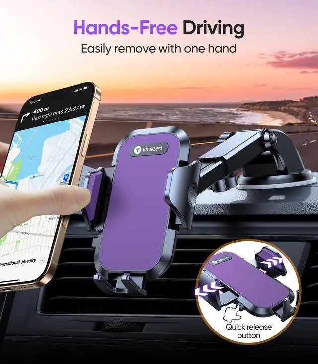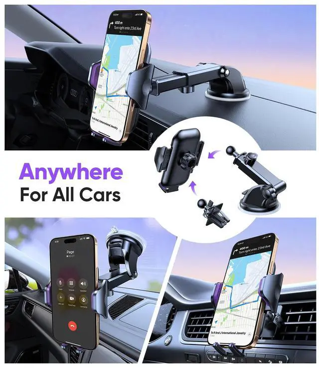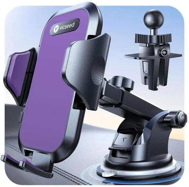 Purple Phone Holders for Your Car [Upgraded True Military-Grade Strongest Suction] Cell Phone Mount for Car Dashboard Windshield Vent Truck Boat Stand Adjustable for iPhone Android