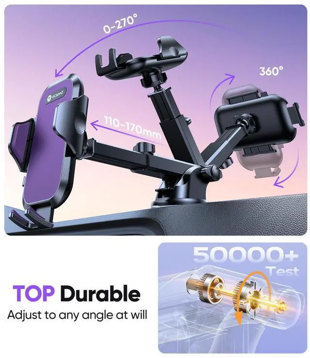 [Super Strong Suction No Falling, No Marks] 2026 upgraded car phone mount features a military-grade suction cup that holds 95+ lbs on your dashboard, windshield, or air vent. Unlike cheap mounts that melt or leave sticky residue, it leaves no residue and resists heat from -40°F to 194°F. Perfect for SUVs, trucks, taxis, and all cars, making it the most secure phone mount for car.