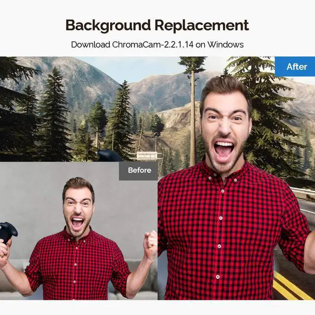 Please download Chromacam-2.2.1.14 on Windows. Register after installation, then you can change the background in a very simple way.