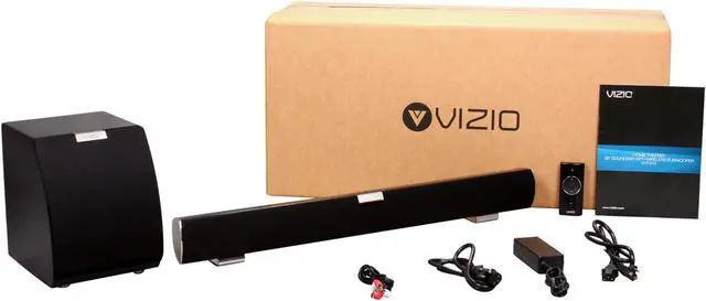 Continuing to raise the bar in home electronics, VIZIO brings you the 32" VHT210 Sound Bar with Wireless Subwoofer. Designed for home theater enthusiasts, this complete audio solution is perfect for 32" HDTVs and larger! Included is the Universal Sound Bar with integrated center and front channels, a wireless subwoofer that can be placed anywhere in your home theater* and cutting edge sound technologies such Dolby Digital, SRS StudioSound HD and SRS TruVolume delivering the high definition experience you’ve always desired! (*Subwoofer can be placed up to 60ft with clear line of sight.)