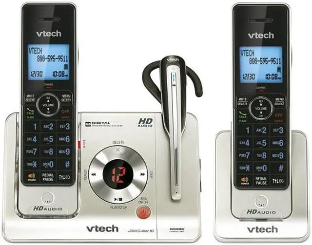 The Vtech Vtls6475-3 cordless phone with answering system is great for home or office use. The cordless headset is lightweight and comfortable, offering you true hands-free convenience. The latest DECT 6.0 technology ensures superior voice quality, less interference, and better protection against eavesdropping. The voice announcement of caller ID, handset speakerphone, and backlit keypad plus display offer the ultimate operation ease. You'll also delight in the intercom function and conference feature between an outside line and four cordless handsets. Beyond these realistic benefits,this unit is also socially responsible, with compatibility with hearing aids and compliance with RoHS standards. Along with the expandability of up to 12 devices (two devices can be cordless headsets) and an array of user-friendly features, you'll see why the Vtech cordless phone is the top choice for any occasion.