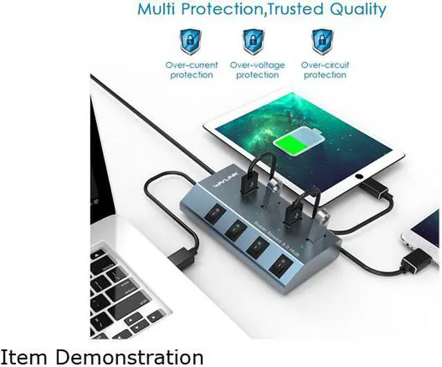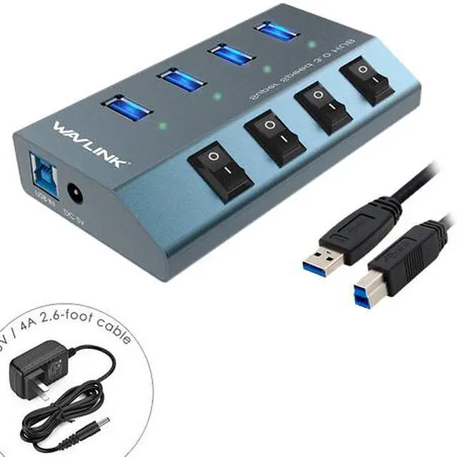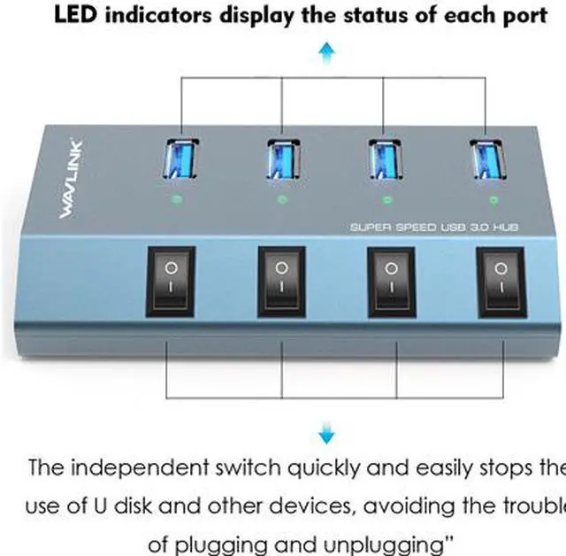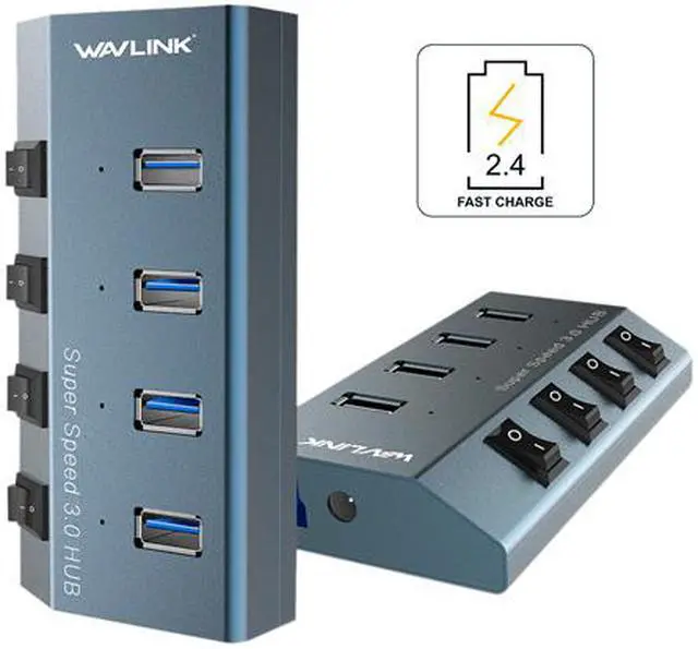 Wavlink Bringing Technology to Life WAVLINK Aluminum 4-Port USB 3.0 Hub with Individual Switches and Quick Charge for Apple Mac