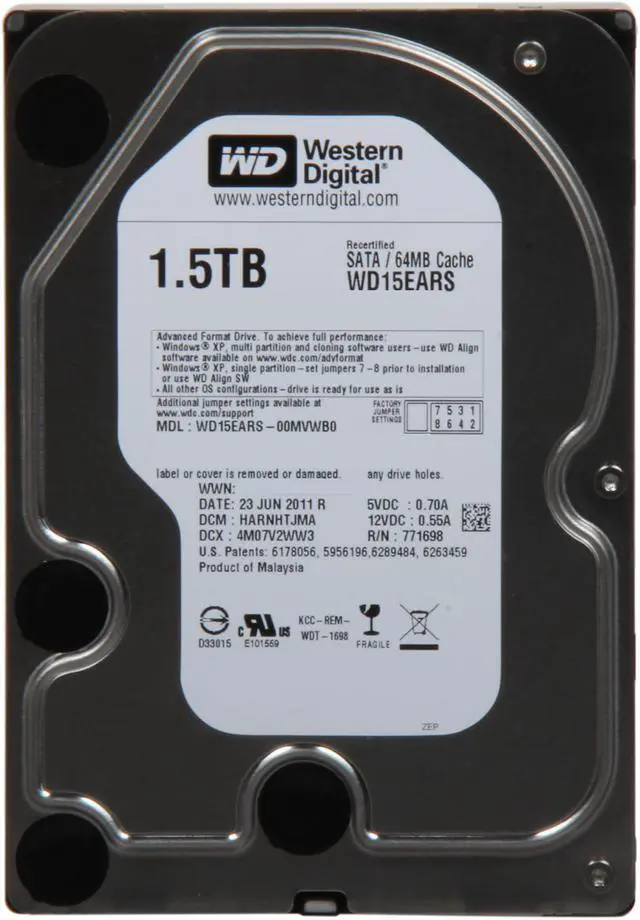 WD WD Green WD15EARS-FR 1.5TB IntelliPower 64MB Cache SATA 3.0Gb/s 3.5" Internal Hard Drive