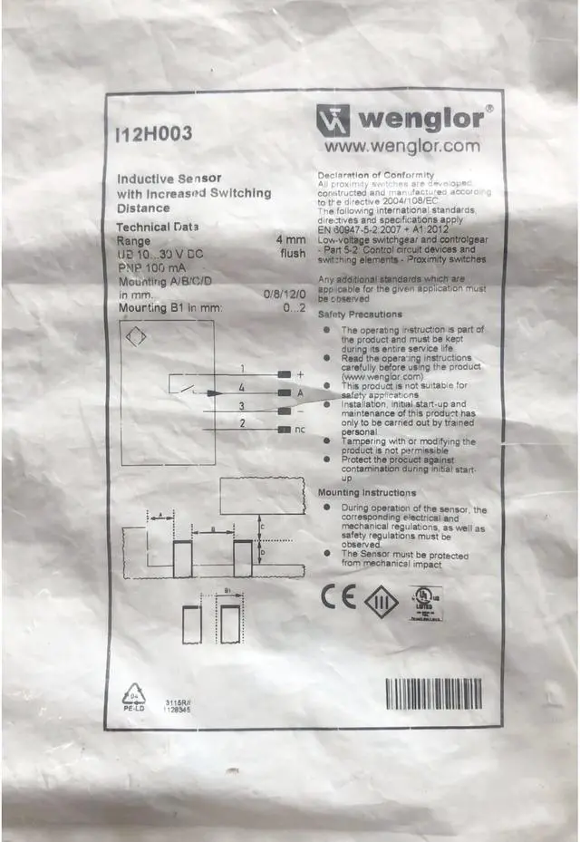 Wenglor Inductive Sensors I12H003 PNP