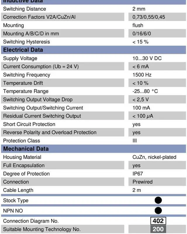Wenglor Proximity Switch IM020BM37TB NPN New Housing Thread M8 Range 2 mm Mounting flush Output NPN Circuit NO Housing Length 37 mm Connection Cable, 3-wire, 2 m