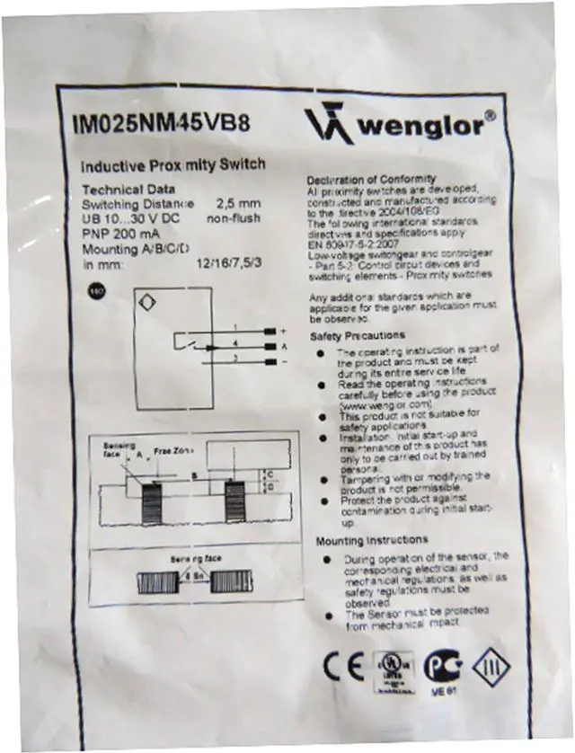 Wenglor IM025NM45VB8 Inductive Sensor PNP New
