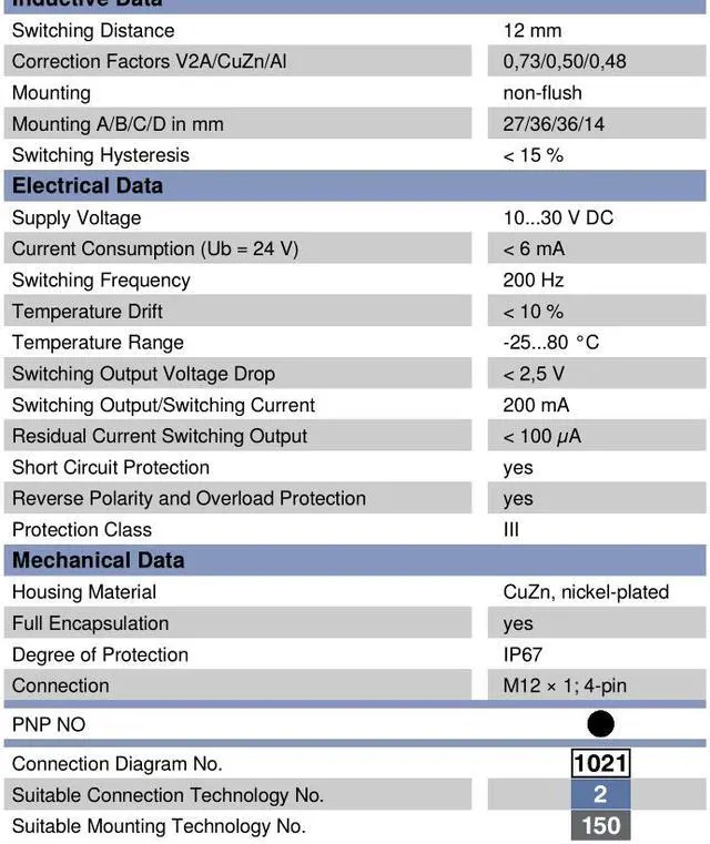 Connection M12 × 1; 4-pin