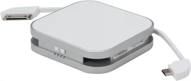 Portable Backup BatteryPower up anywhere or extend your mobile device's battery time with this portable backup battery. A micro USB connector and an iPhone/iPod connector make it compatible with most devices. The backup battery itself can be charged two ways: via the USB input or on the Powermat / wireless charging hot spot.