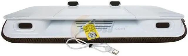 The built-in stereo speakers deliver rich, full stereo sound for music and online video, immersing you in amazing audio quality. Thanks to the stable surface, you can place your laptop on it and enjoy what you are doing anywhere-on your sofa, bed, or even floor, and the ten-degree angled riser gives a perfect tilt to your laptop for easy viewing on screen while making your neck and legs more comfortable when you are seated. Worry about heat dissipation? The slotted surface allows the USB-powered fan to distribute air quietly and evenly under your notebook computer and the heat shielding design protects your body from notebook heat for maximum comfort.