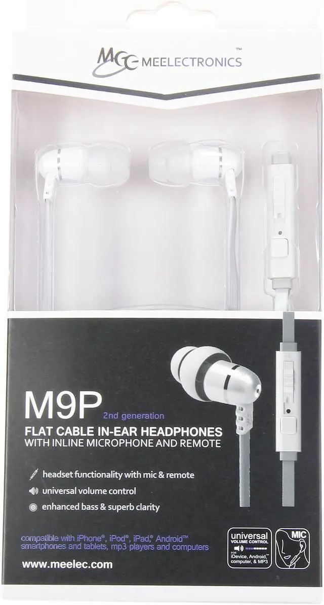 MEElectronics M9P Flat Cable In-Ear Headphone with Inline Microphone, Remote, and Universal Volume Control