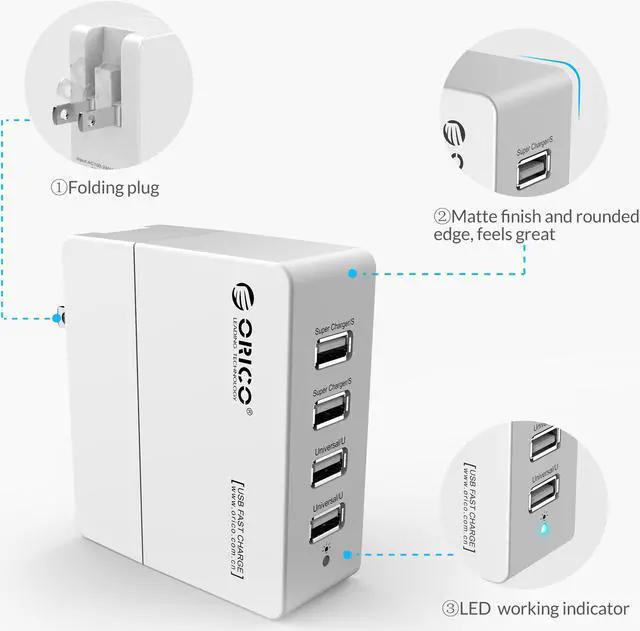 ORICO Super Charger is designed to Smart USB Charging Controller, safest for any of your devices. 2.4 amps/5 volts High Power Super Charging Port