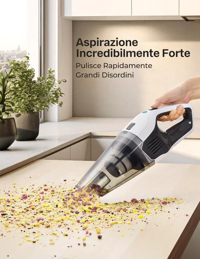 STRONG SUCTION: Our hand-held vacuum features a powerful 70W ultra-high-power motor capable of suctioning up to 8Kpa, easily eliminating even the smallest dust and debris particles from sofas and mattresses.