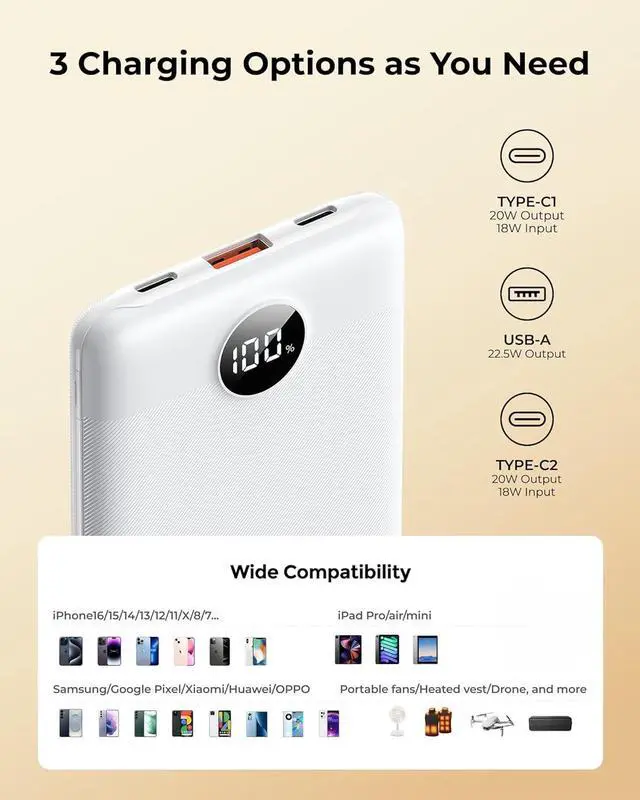 | Whats in the box | 10,000mAh Power Bank, Product Manual, USB C Charging Cable |