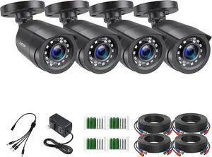 ZOSI 4 Pack 2MP 1080p HD-TVI Home Security Camera Outdoor Indoor 1920TVL,24PCS LEDs,80ft Night Vision, 90°View Angle, Weatherproof Outside Surveillance CCTV Bullet Camera(Black)