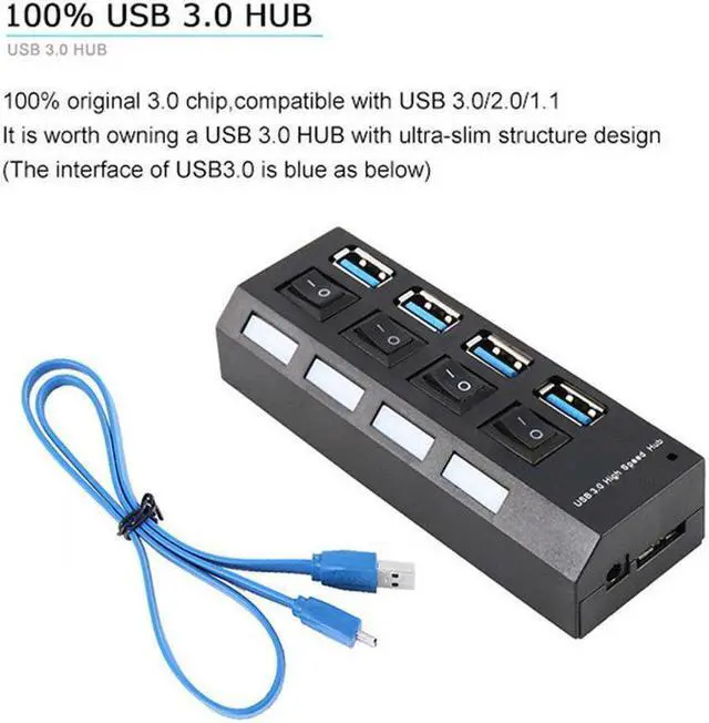 - USB 3.0 splitter hub saves the trouble of unplugging devices whenever you don't need it. turn on/off the port at your need.