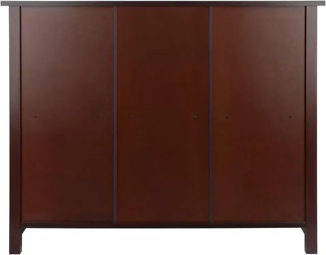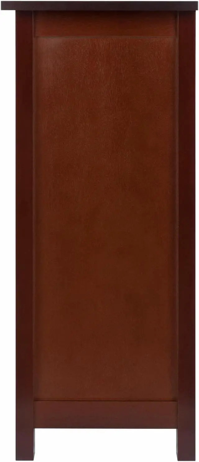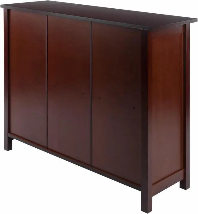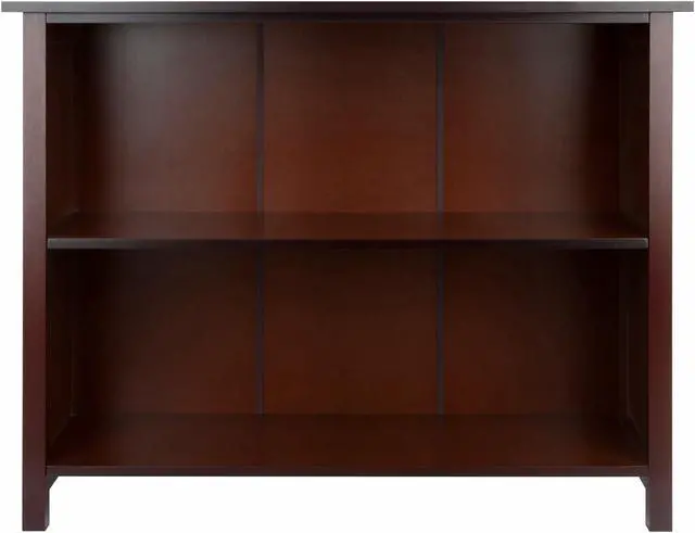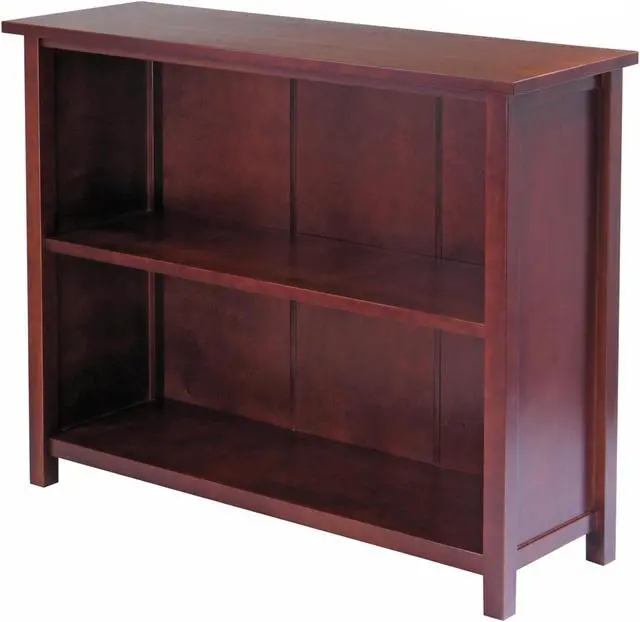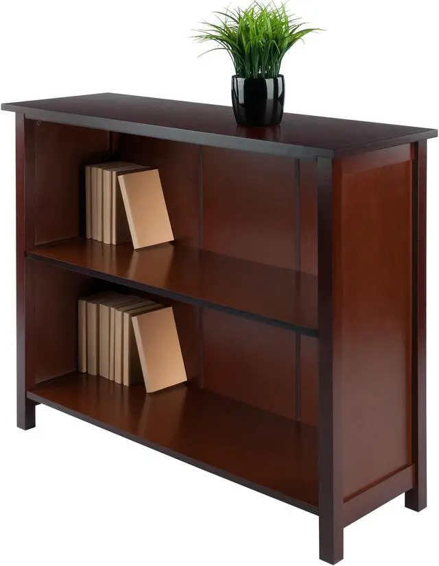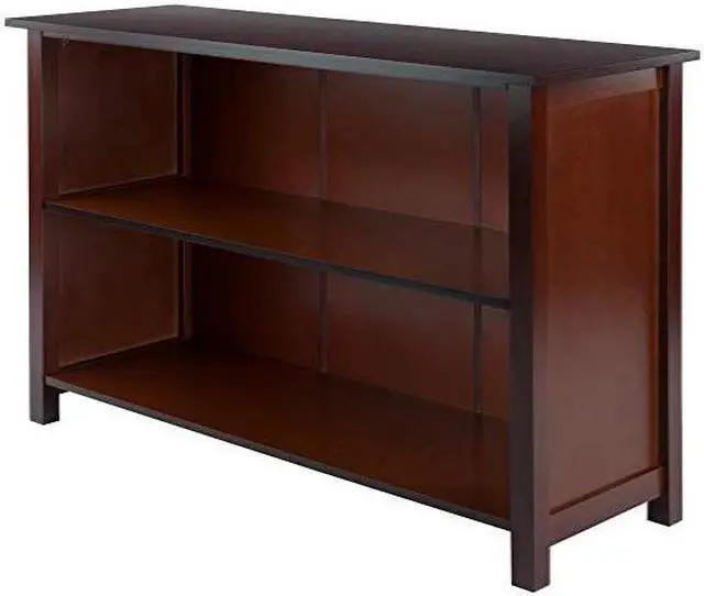Winsome Milan 3-tier long storage shelf or bookcase in an appealing antique walnut finish has solid and composite wood construction for durability.Storage shelf is suitable for any interior and requires assembly.