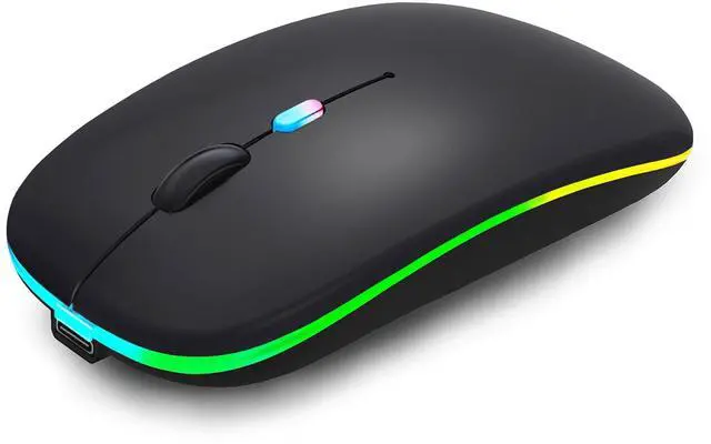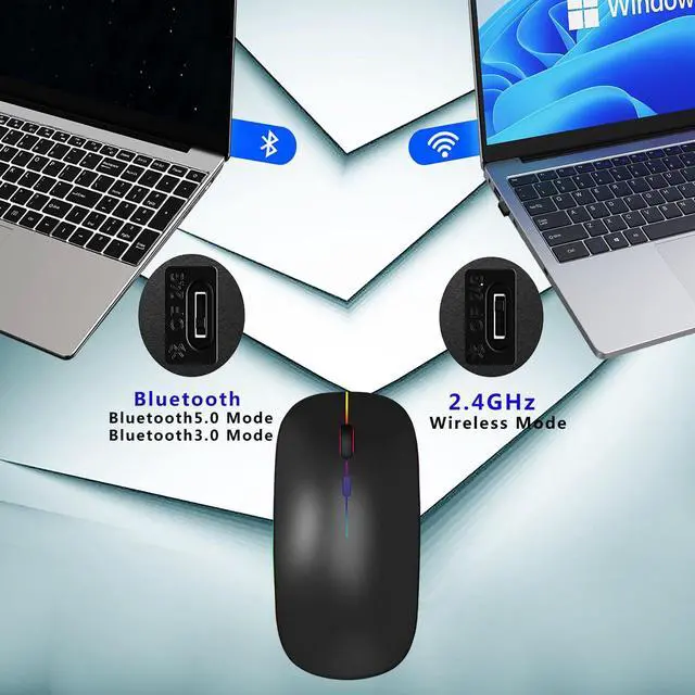 7pcs Color LED Charging Dual Mode Bluetooth Mouse (Bluetooth 5.2/3.0+USB2.4G)(Matte Black)