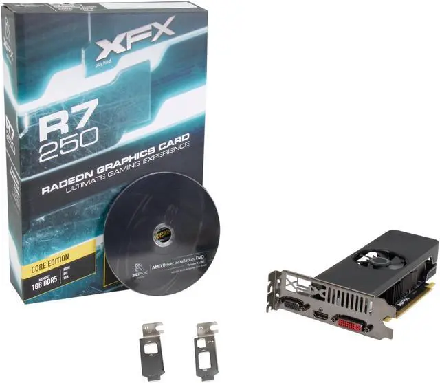 The XFX R7-250A-ZLF4 is powered by an AMD Radeon R7 250 GPU. It delivers evolved performance and lower power consumption at a budget-friendly price with the latest AMD graphics technology. Radeon R7 250 is based on AMD generation 28nm GCN architecture, and comes with support for DirectX 11.2 for improved graphics in the hottest games. AMD App Acceleration boosts your everyday applications. And with DVI/HDMI/DisplayPort connectors, you can build multi-monitor environments for enhanced viewing and productivity.