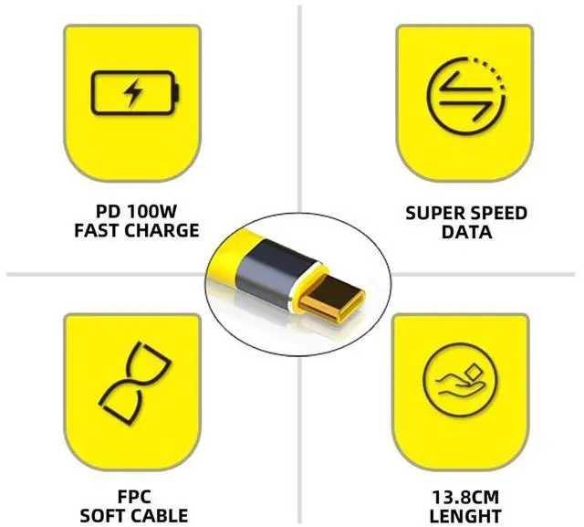 13cm Type-C USB-C Male to Male USB4 40Gbps 100W 8K Flat Slim FPC Data Cable for Laptop & Phone