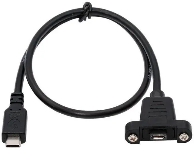 Micro USB to USB-C Cable: Connector A: Micro USB2.0 Female Dual Screw-Lock Panel Mount, Connector B: USB Type-C Male. Cable length: 1.6FT/50CM.