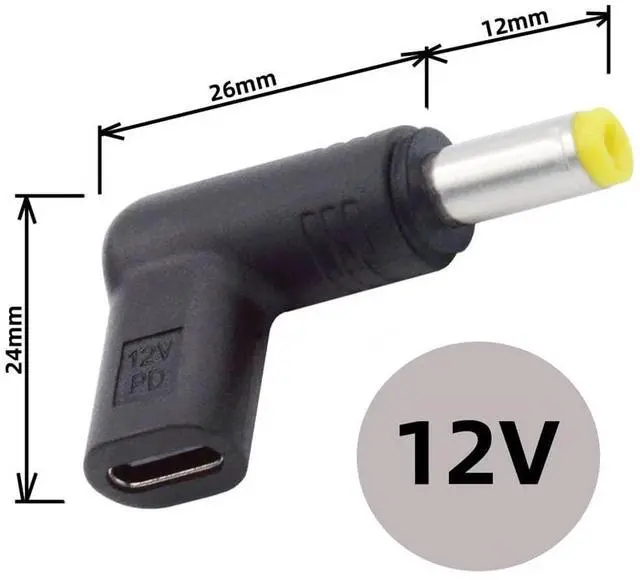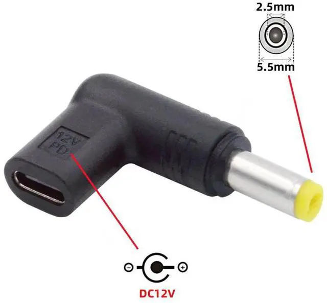 USB 3.1 Type C USB-C Female to DC 12V 5.5x2.5mm Plug Adapter PD Emulator Trigger 90 Degree Angled