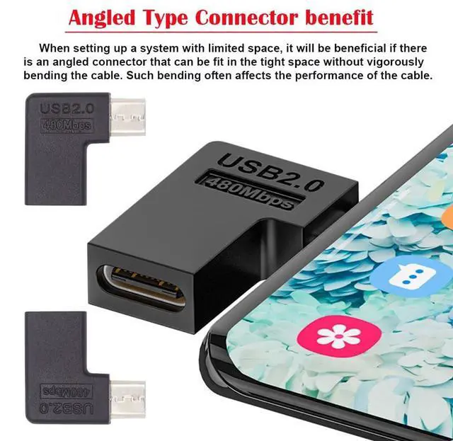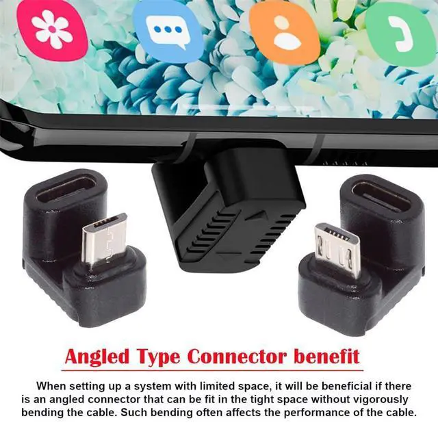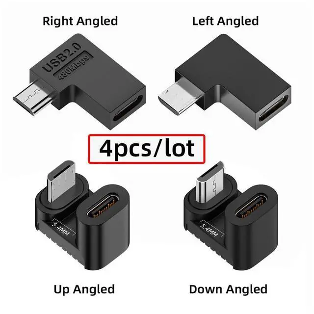 90/360 Degree Angled USB-C to Micro USB Adapter 4 Pack, USB2.0 Type C Female to Micro USB Male Power Data Adapter(Right & Left &Up & Down) for Phone Tablet