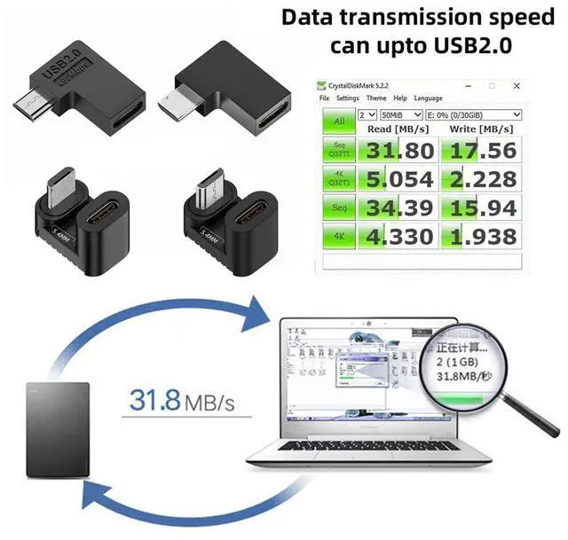 The package included 4pcs adapter(Angled Left+Right+Up+Down).Support Scalable DC5V power charging.