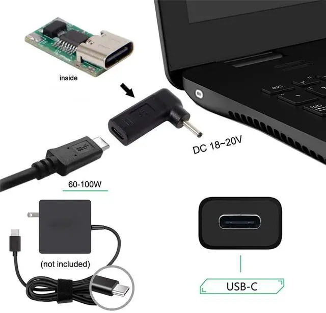 Use it with the 65W or 87W Type-C Charger to conveniently charge your Laptop with DC 18v-20v port from a wall outlet.
