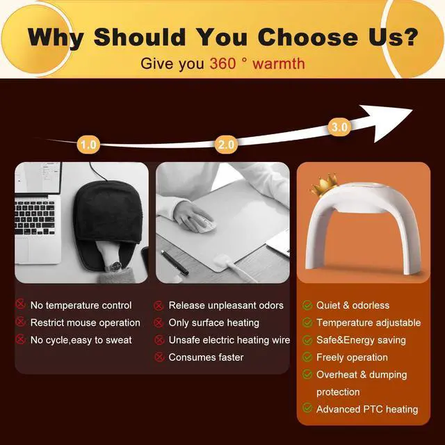 ![Alt view image 5 of 7 - Heated Mouse Pad Hand Warmer, [ Upgraded Chip, Longer Lifespan] 110V Heated Desk Warmer for Office Gaming Adjustable Temperature with 5ft Cable, Desktop Hand Warmer for Kids Men Women](https://c1.neweggimages.com/productimage/nb640/C3H5D2512290KTFKX14.jpg)