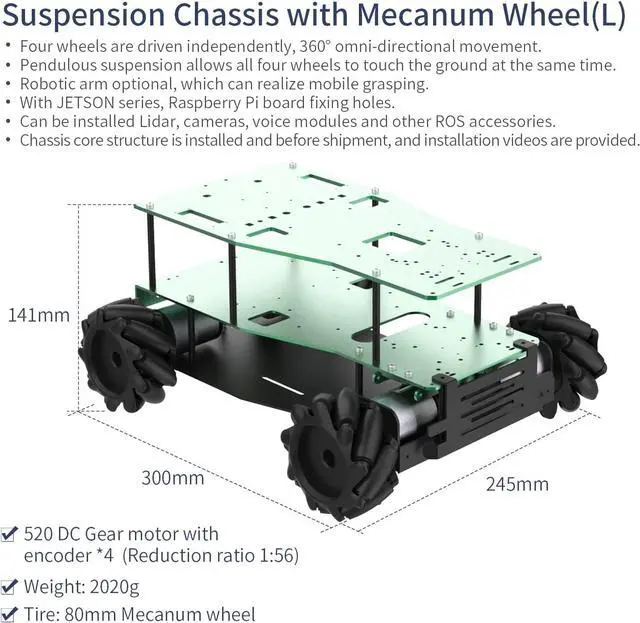 Learning RobotsThese styles of chassis platform models are a good helper when you learn robotics, embedded systems, Python programming, and ROS systems. From learning STEM32, arduino, jetson nano, raspberry Pi code programming, to robot component combination installation coding, to how to make a robot of your own, Yahboom's chassis kit is a good framework to start operating.