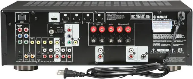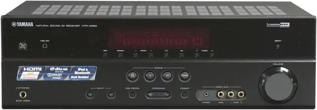 | Features | Advanced Features - SCENE buttons (BD/DVD, TV, CD and Radio) - quick and simple to use - YPAO sound optimization for automatic speaker setup - HDMI® CEC functionality - Audio input assign capability for HDMI® and component video input - Ability to change HDMI® input while in Standby Through mode - Bluetooth (A2DP) compatibility with optional Yamaha Bluetooth? Wireless Audio Receiver YBA-10 - iPod/iPhone compatibility with optional YDS-12 Universal Dock as well as iPod compatibility with optional YDS-11 Universal Dock - iPod song titles displayed in English and Western European languages on the front panel - Front panel mini jack for connecting portable audio player - Initial Volume Setting and Maximum Volume Setting - Audio Delay for adjusting Lip-Sync (0-240ms) - 40-station preset tuning / Auto preset tuning - Auto power down function with variable time setting - Preset remote unit High Sound Quality - 5-channel 525W powerful surround sound (105W x 5) - HD Audio format decoding: Dolby TrueHD and DTS-HD Master Audio; Dolby Digital Plus and DTS-HD High Resolution Audio - Burr-Brown 192 kHz/24-bit DACs for all channels - Direct Mode for high quality sound reproduction High Picture Quality - 1080p-compatible HDMI® (4 in/1 out) - Supports Deep Color (30/36 bit), x.v.Color, 24Hz Refresh Rate and Auto Lip-Sync compensation Surround Realism - HD Audio decoding with CINEMA DSP (17 DSP programs) - Adaptive DRC (Dynamic Range Control) and Adaptive DSP Level - Compressed Music Enhancer - SILENT CINEMA and Virtual CINEMA DSP |