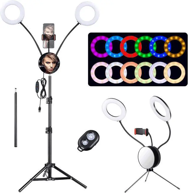 - 7" Dual LED Ring Light Kit - 2 pack LED ring light kits provide shadowless environment by making light come out from 2 sides; Equipped with adjustable mirror, flexible gooseneck, helps to create perfect makeup