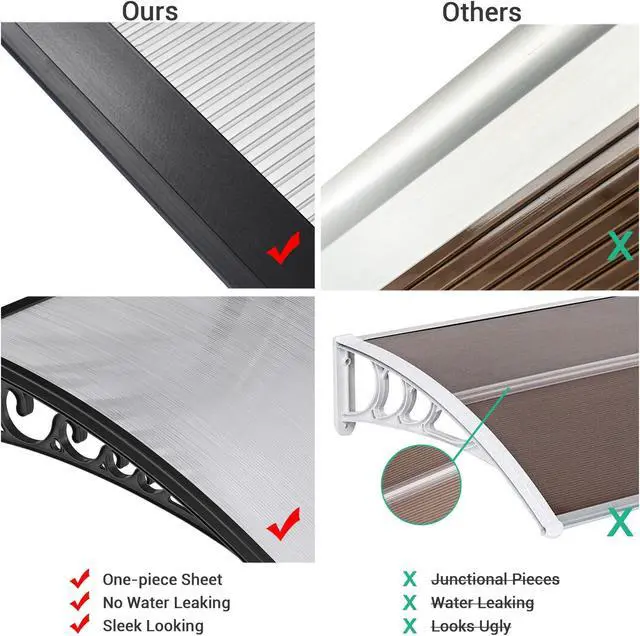 - Compact One-piece Design - One-piece awning features waterproofing and seamless surface for ensuring no water leaking, much better than junctional pieces construction