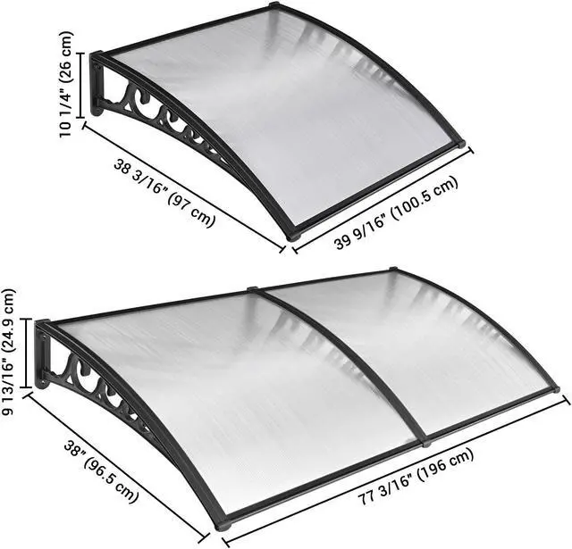 - Door Awning Kit - Includes 1 pcs 80"x40" awning and 1 pcs 40"x40" awning, connected together for wider coverage, or mounted separately to different wall positions to block direct sunlight, keep the rain and snow off the door when open, well protecting your furniture, floor, window, door and more