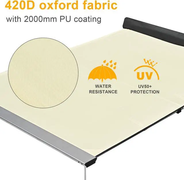 - Anti-UV & Water Resistant: Constructed of 420D oxford fabric with 2000mm PU coating and UV50+ protection, this awning gives you a cozy shelter to prevent harmful sun rays and drizzles, helping you enjoy camping, picnic and car travel