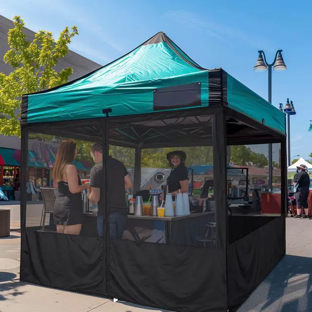- Roll-up Windows & Zippered Door - Includes 4 pcs sidewalls with 2 roll-up service windows for you to collect the money or pass prepared food to customers conveniently, and 4 pcs sidewalls with a zipper in the middle for easy entry and exit