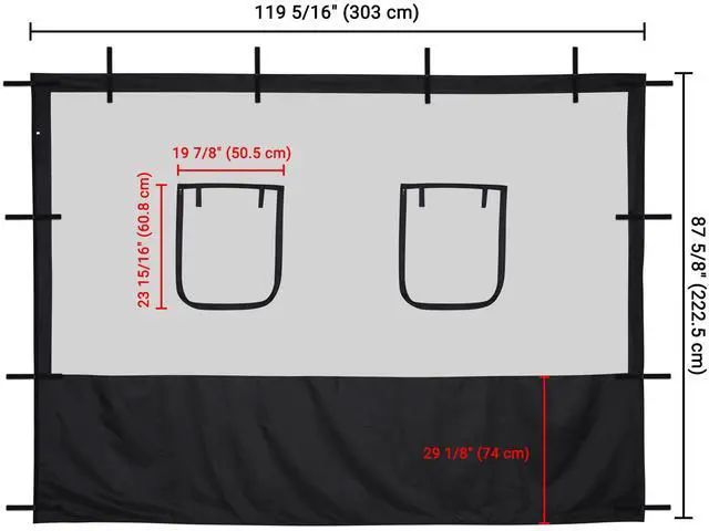 - Overall Size of Sidewall with Window(LxH) 119 5/16" x 87 5/8" (303 x 222.5 cm)