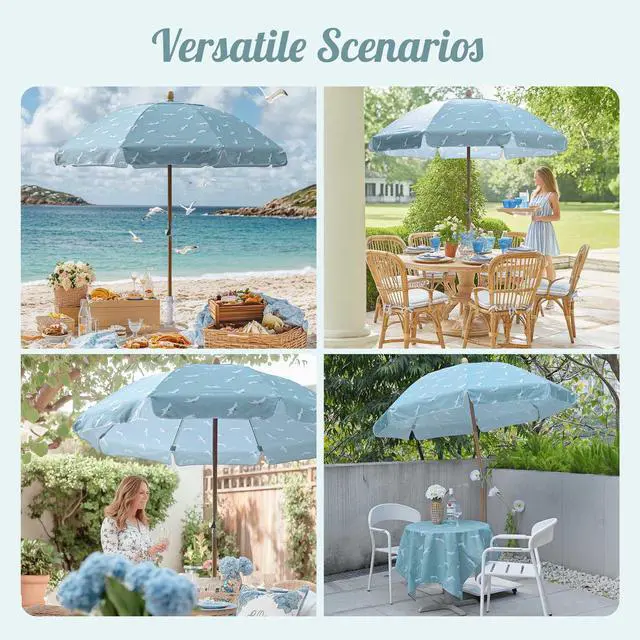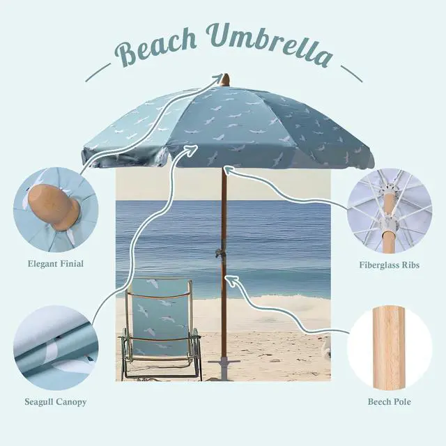 - LAGarden Our Beach Umbrella - Designed with flying seagulls that echo the beauty of the seaside, inviting you to lose yourself in the soothing vibes of a serene beach day