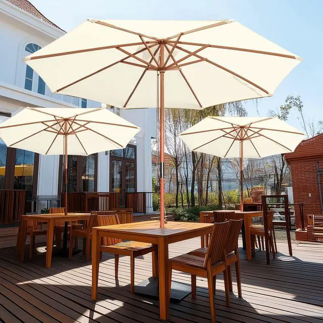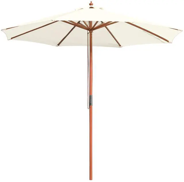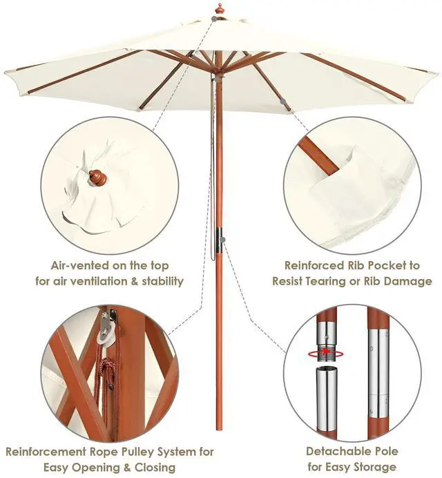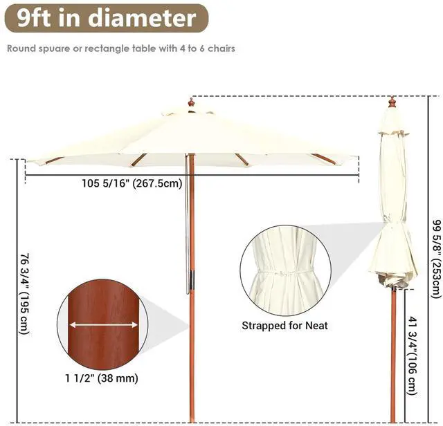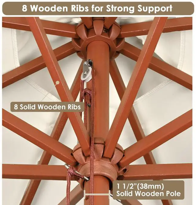 - Stylish Wooden Umbrella - 9 ft Wooden Patio Umbrella features wooden ribs & pole to show the beauty of nature, brightening the place with country style, enjoy the leisure time under the umbrella, feels like in a vacation