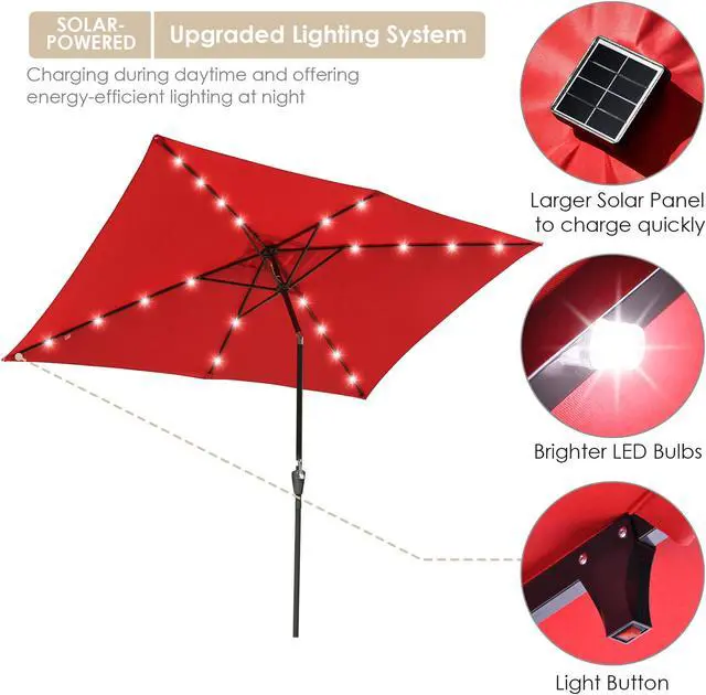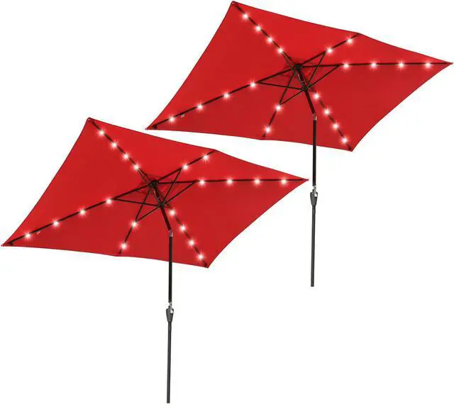 - Multi-purpose Lighted Parasol - 2 Packs of 10x6 ft Solar Lighted Patio Umbrellas offer both sunshade during the day and lighted decoration at night, casting gentle glow for dreamy & romantic vibes to poolside parties, backyard gatherings, or patio cinema where you can sip cocktails and enjoy carefree moments all day long