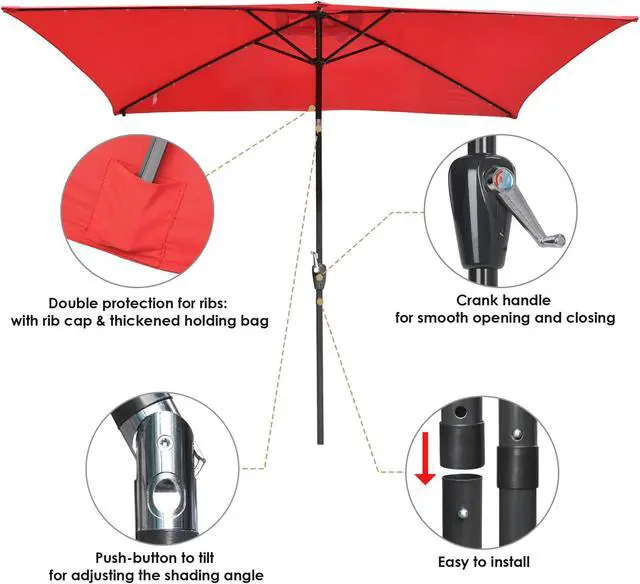 - Easy & Quick Operation - Features crank lifting mechanism to smoothly open and close the umbrella with little effort, so that you can instantly enjoy the cool shade in seconds, along with a loop strap to hold the closed umbrella in place for a clean and tidy look