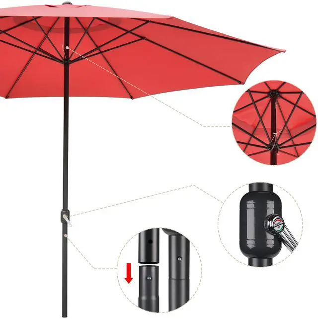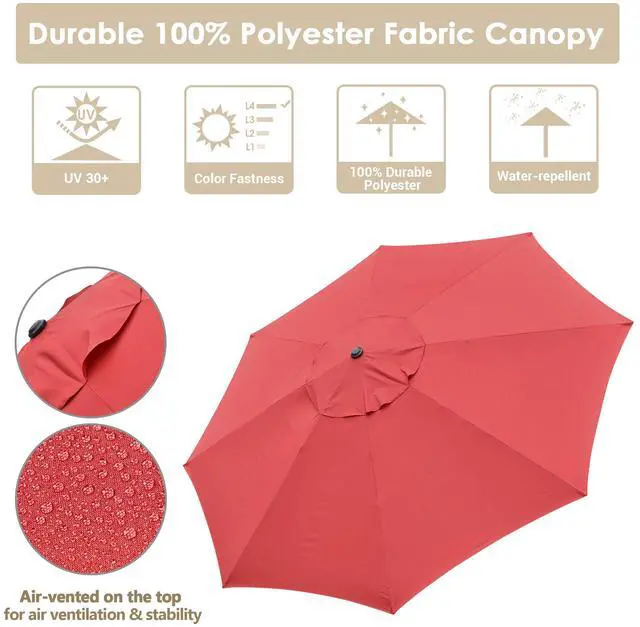 - Durable in Use - Canopy made of water repellent 100% polyester fabric which features durability for long lifespan; Large air vent design on the canopy top for airflow to offer great stability in outdoor space; 1 7/8" extra-large diameter rust-free center pole with 8 ribs provides the most stable support