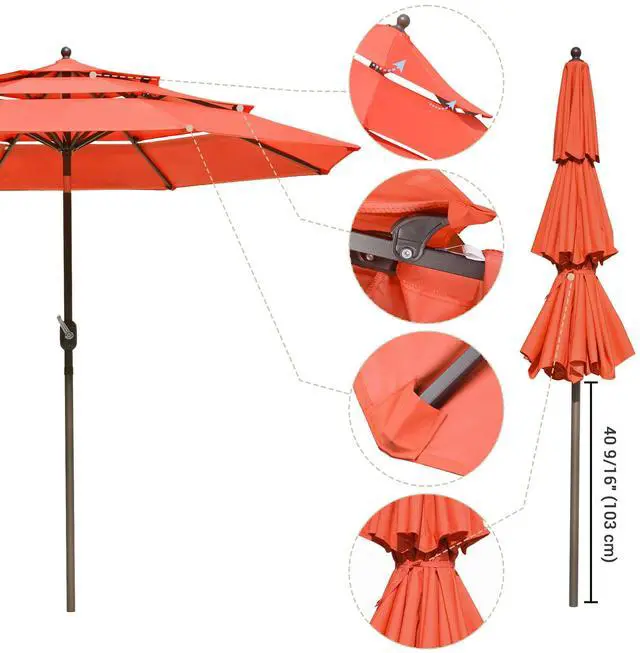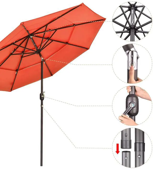 - Great Ventilation & Stylish Appearance - 10 ft 3 Tier Patio Umbrella, 3 layers for great ventilation, keeps air flowing to offer better stability; Unique layered umbrella shows leisure style, to enjoy your 3rd space leisure time with outdoor view on every sunny day