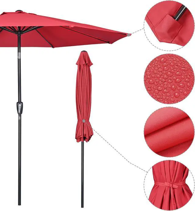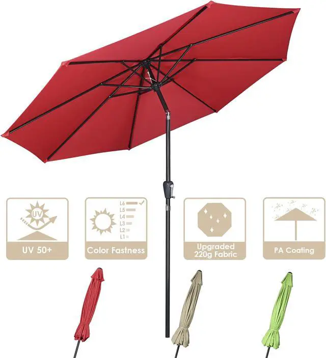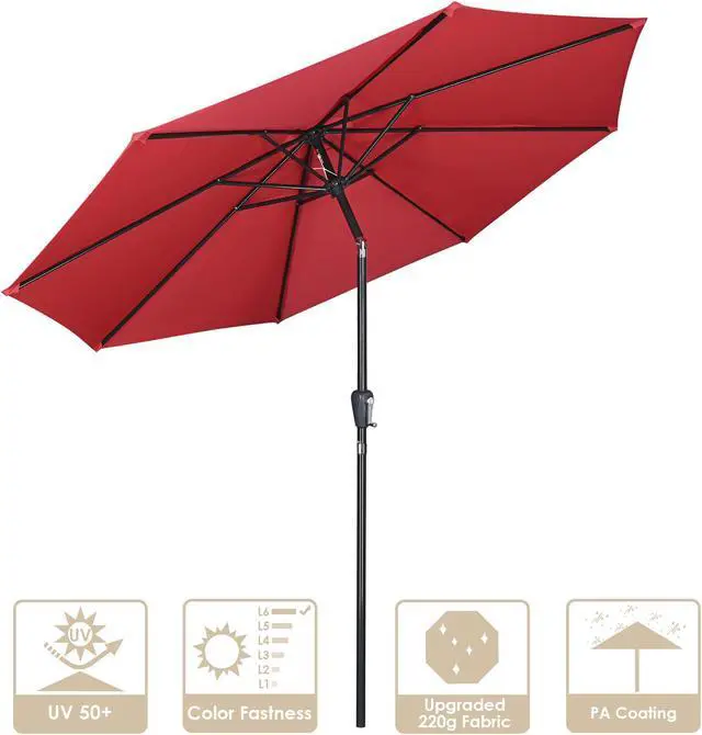 - UV50+ & Fade Resistance - 9 ft Patio Umbrella features UV50+ protection to block 98% UV ray for effectively protecting you from harmful sunlight; Color fastness of European Standard level 6, keeping original color for twice as much time as umbrellas with level 4 under sun exposure