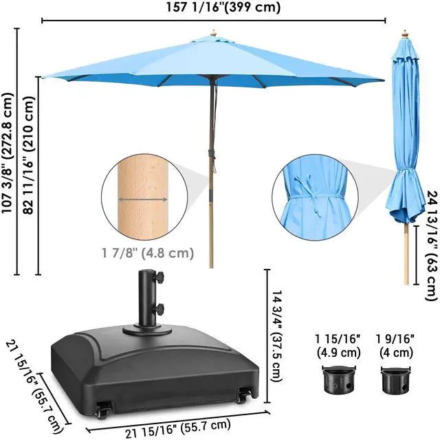 - 2 Weighted Methods - Fillable design allows you to increase its weight by adding water or sand into the umbrella base, weighing a maximum of 88 Lbs when filled with water or 143 Lbs when filled with sand to provide stable & strong support for the umbrella