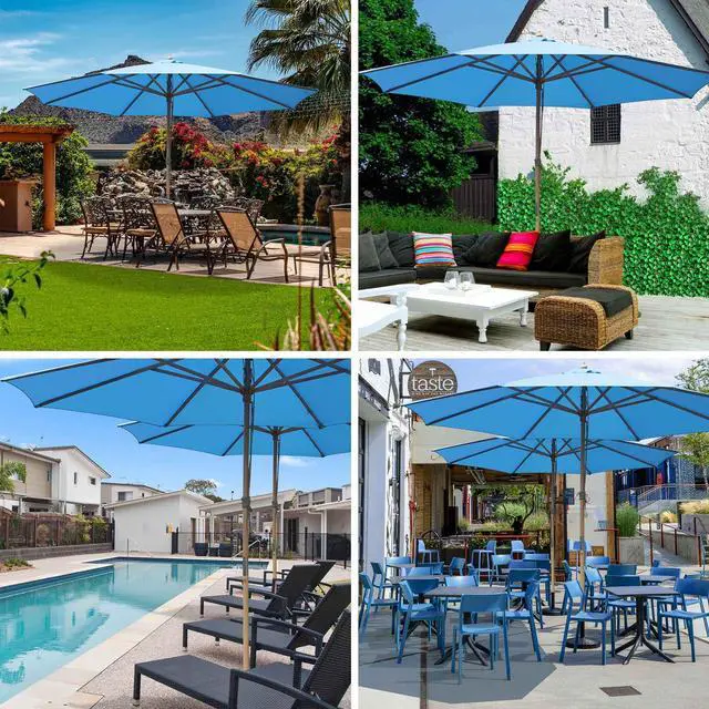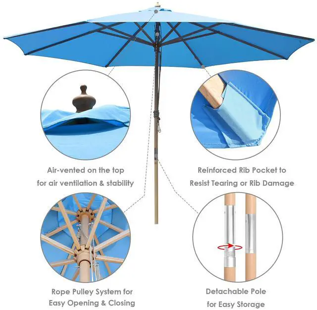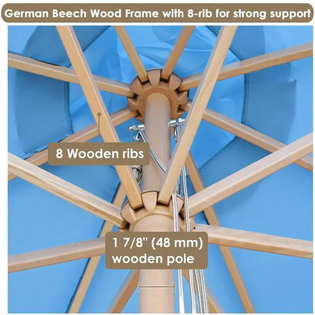 - 13ft Outdoor Patio Umbrella features a strong German beech wood frame with uniform texture, fitting with retro and American style furniture, along with 8 ribs providing excellent stability and support to the structure, ideal for shading and decorating your outdoor spaces