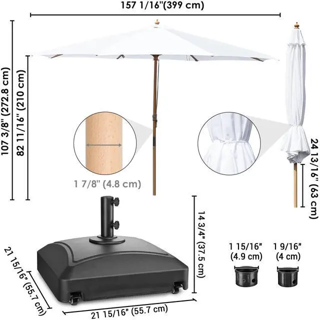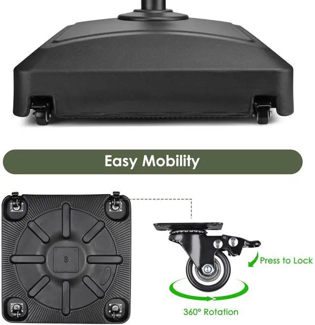 - 2 Weighted Methods - Fillable design allows you to increase its weight by adding water or sand into the umbrella base, weighing a maximum of 88 Lbs when filled with water or 143 Lbs when filled with sand to provide stable & strong support for the umbrella