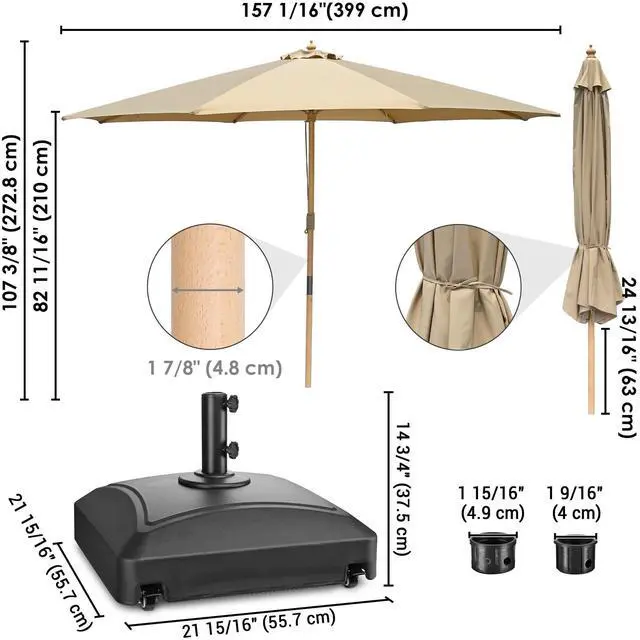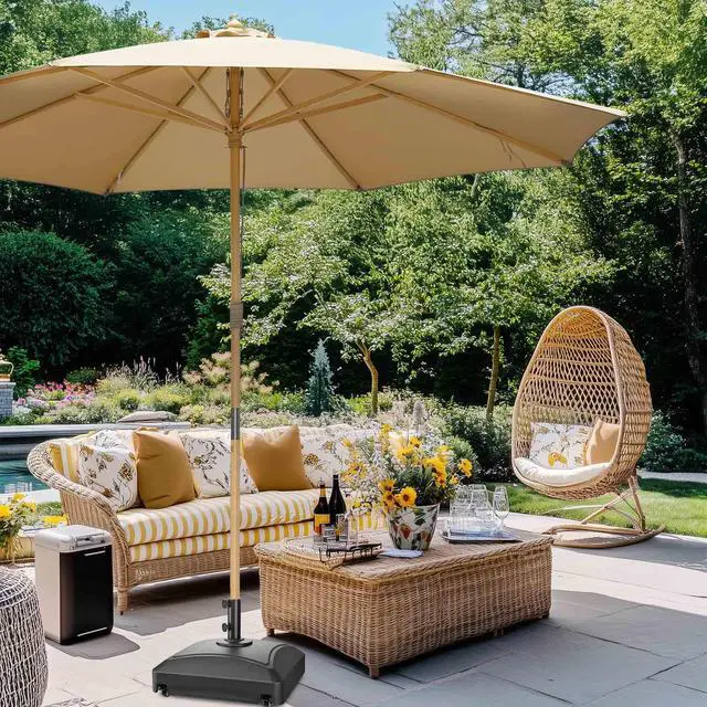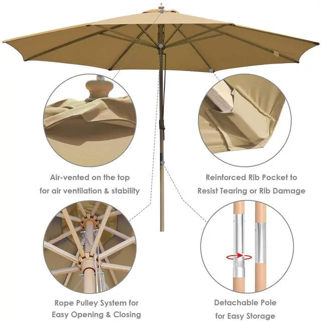 - 13ft Outdoor Patio Umbrella features a strong German beech wood frame with uniform texture, fitting with retro and American style furniture, along with 8 ribs providing excellent stability and support to the structure, ideal for shading and decorating your outdoor spaces